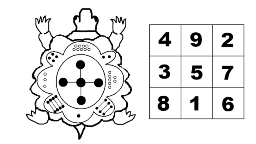 Древний Китай богат на легенды. И согласно одной из таковых, в 560 году до н.э., когда вся страна страдала от наводнений, на берег реки Ло вышла черепаха с необычным узором на панцире. Ее заприметил Император Ю, который как раз прогуливался рядом. К своему огромному удивлению, он увидел на спине черепахи странный квадрат с начертаниями, который впоследствии получил название Ло-шу, что в переводе с китайского означает «послание реки Ло».