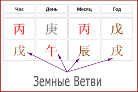 Еще одним шагом — дополнением к анализу карты ба-цзы человека являются Земные ветви — нижний ряд иероглифов в Четырех столпах судьбы. Они так же, как и Небесные стволы, способны дать информацию о сторонах личности человека, многих событиях в жизни, отношениях с близкими, предсказать перемены или несчастные случаи, в общем — предоставить еще больше подробностей, заложенных в карте иероглифами и их взаимодействием.